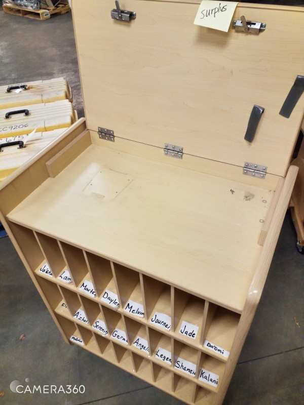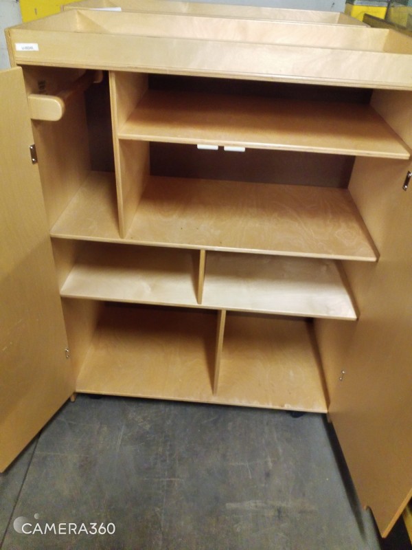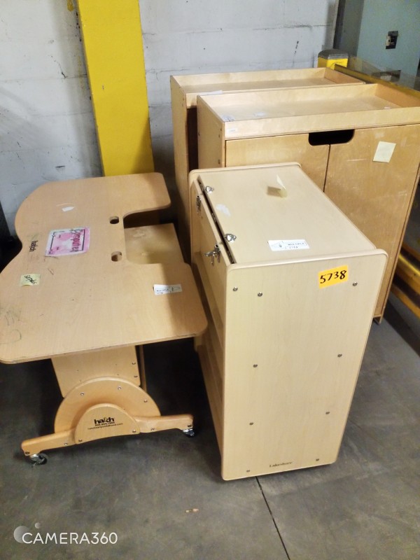 EARLY CHILDHOOD FURNATURE QTY 4 - DESK, STORAGE FIXTURES
