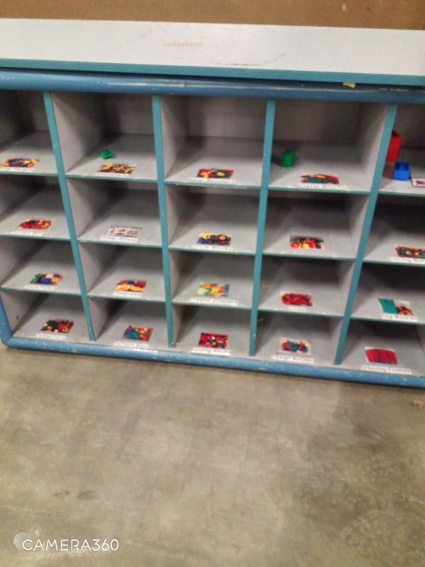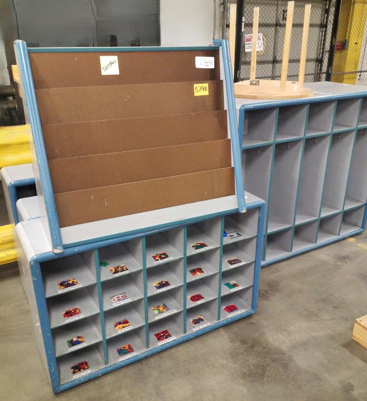 EARLY CHILDHOOD FURNATURE QTY 8 - STORAGE FIXTURES, SMALL TABLE, ORGANIZER