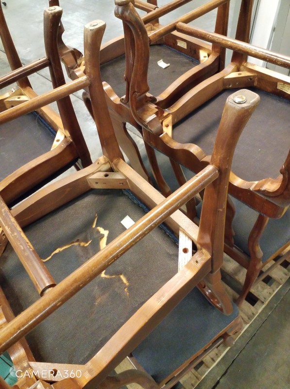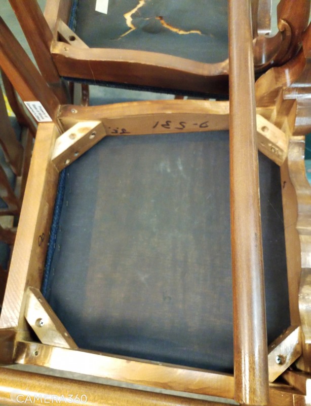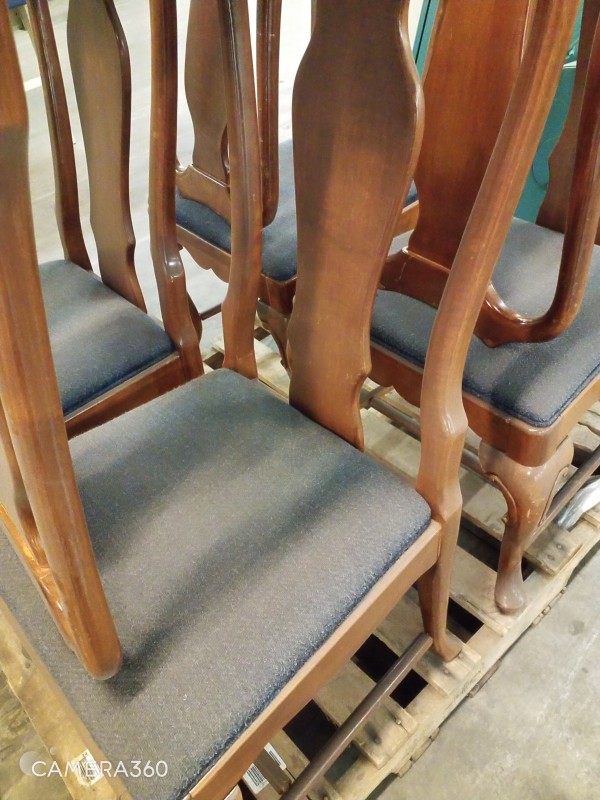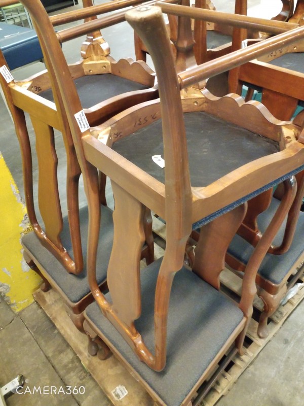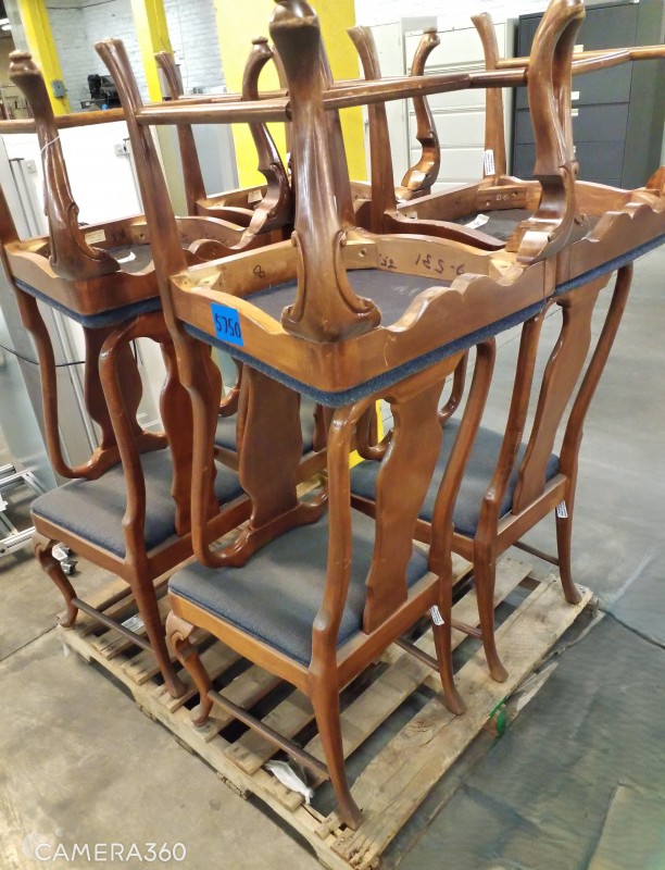 WOOD FURNITURE CHAIRS WITH FABRIC COVERED SEATS - QTY 8
