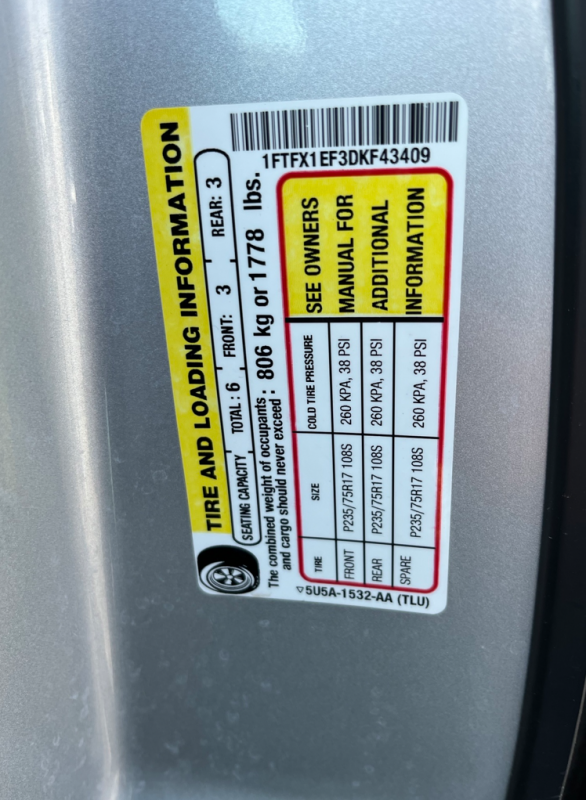 2013 Ford F150 - UNKNOWN IF THERE ARE ANY MECHANICAL ISSUES. MAY HAVE A/C, P/S, P/W, P/L, ABS, AM/FM, AUTOMATIC TRANSMISSION. OPTIONS MAY NOT WORK. THE ATTACHED PICTURES OR THIS DESCRIPTION MAY NOT INDICATE THE ACTUAL CONDITION OF THIS ITEM. WE DO NOT PROVIDE ASSISTANCE WITH TIRE INFLATION OR MECHANICAL ISSUES. VEHICLE MAY HAVE A DEAD BATTERY AND WILL NEED TO BE JUMPED TO START.