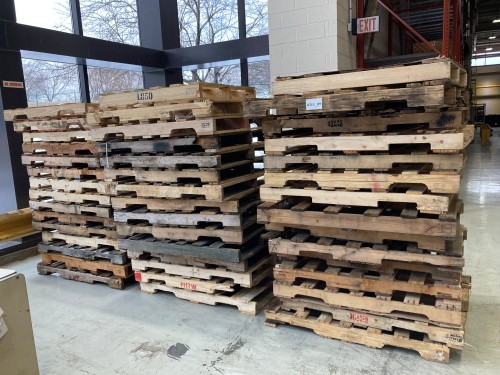 (45-EA) ASSORTED USED WOOD PALLETS. CONDITION UNKNOWN, BUY AS IS.