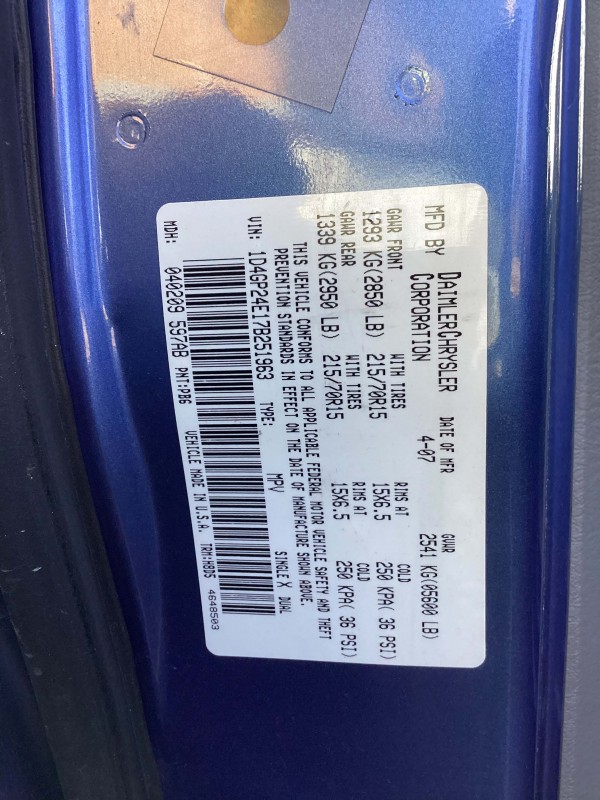 45123 1D4GP24E17B251963 2007 DODGE GRAND CARAVAN