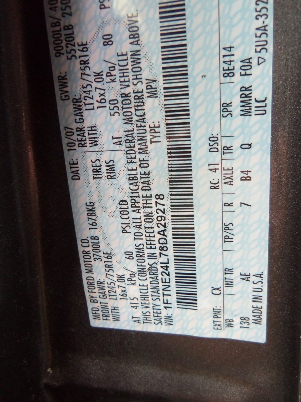 45809 1FTNE24L78DA29278 2008 FORD E-250 VAN