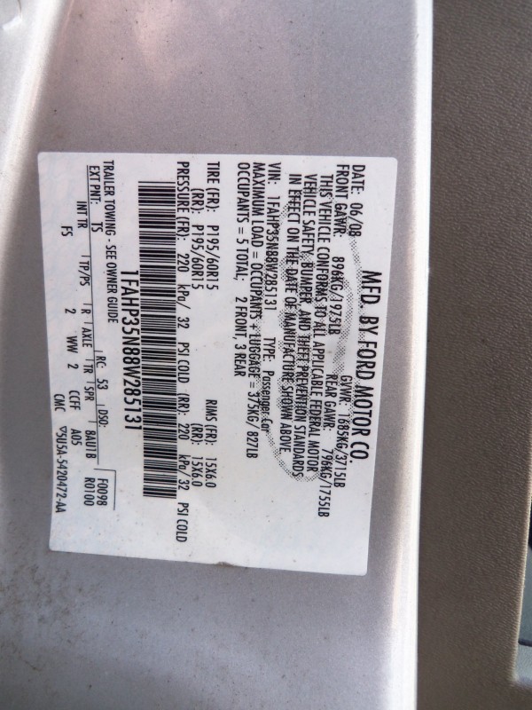45918 1FAHP35N78W285136 2008 FORD FOCUS