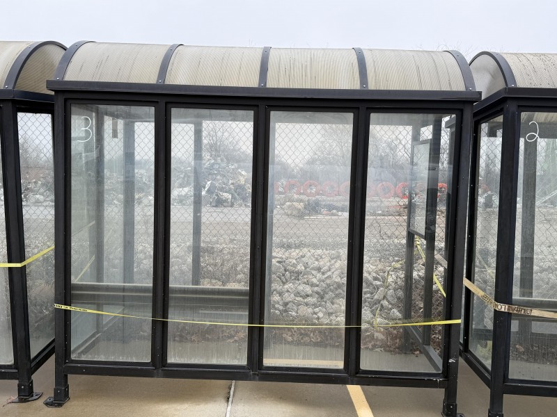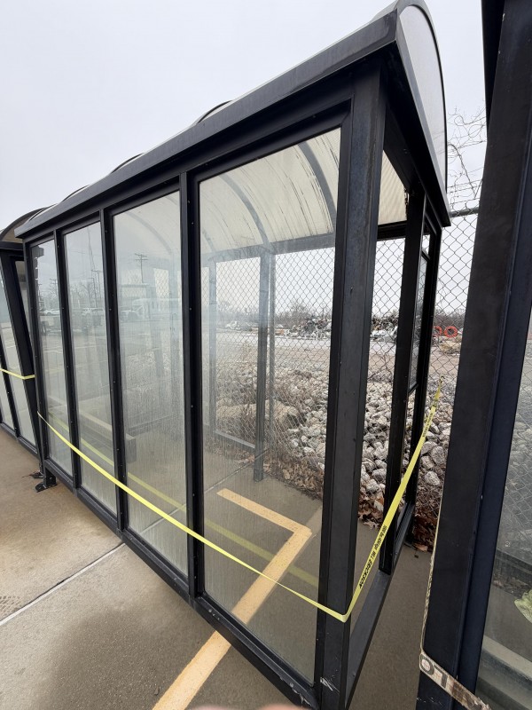 Bus Shelter approx 9'x5', as seen in photos.BUS STOP IS MISSING 3 PANELS AND HAS NO BENCH! Bring truck or trailer. We can help with loading.