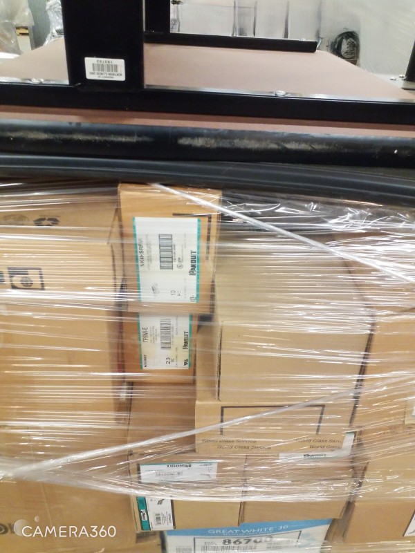 PALLET OF MISC - SMALL WORKSTATION FIXTURES ON WHEELS, PANDUIT CABLE COVERS, ECT