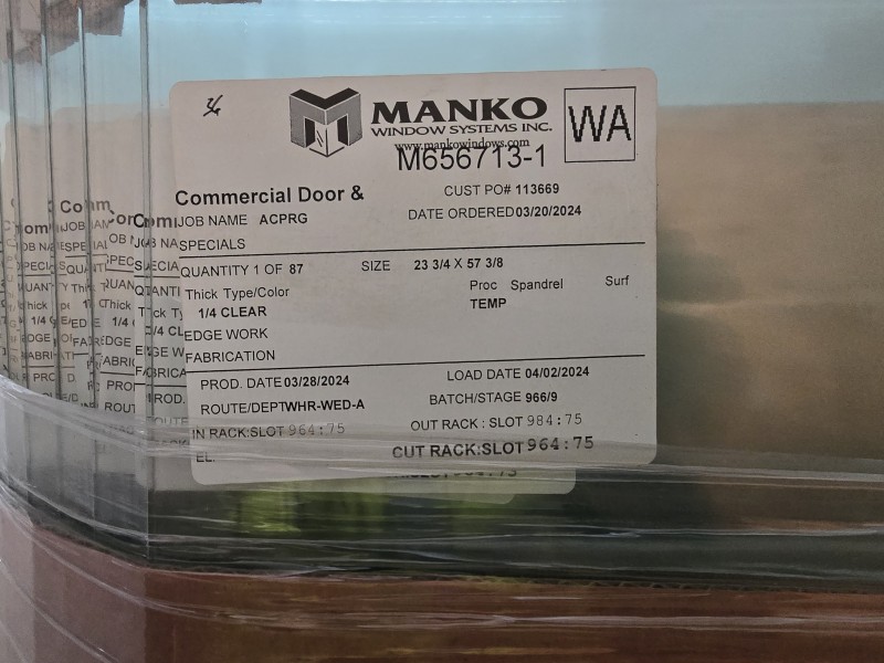 87 Pieces of Manko 1/4 in x 23 3/4 in x 57 3/8 in clear tempered glass