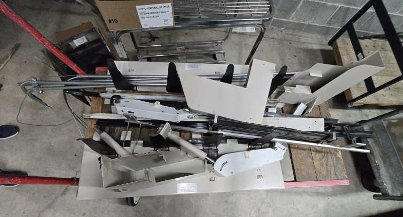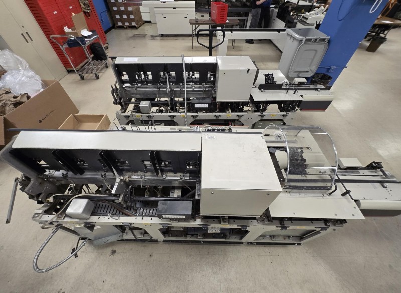 Description: The two old Bell & Howell Mailstar inserters were an early 90’s mechanical inserting machine(s). They were used to fold and insert letters as well as document statements into mailing envelopes. They consisted of a 10-foot folder that connected at 90 degrees to the main body of the machine. The main body is 9 feet long where the insertion took place. Within the machines there are brushless motors that drove the drive assembly and another motor which mechanized the inserting arms. The machines in addition to folding and inserting also can insert up to four inserts. The inserts are 1/3 sheets of paper that provide additional information to documents and letters and are contained in the same envelope via the Mailstar.