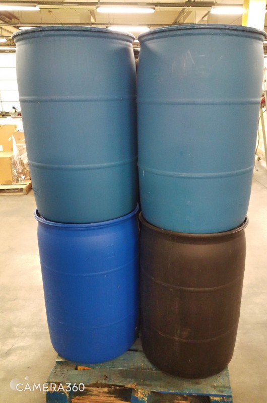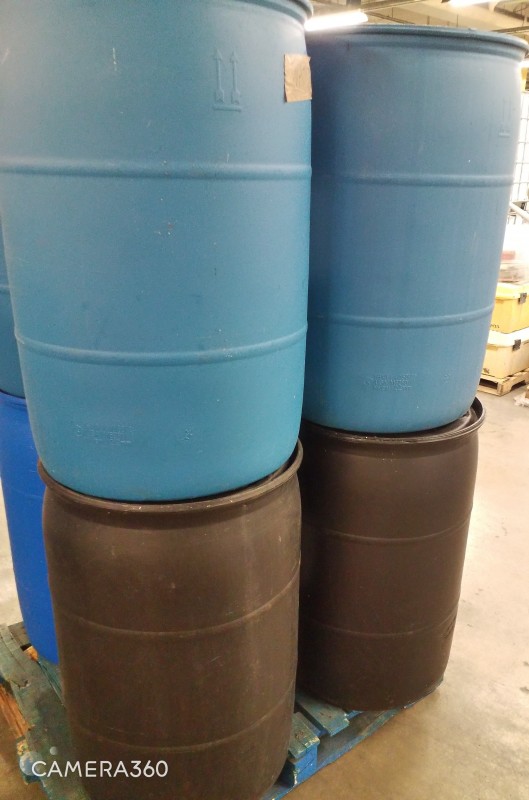 PALLET OF PLASTIC BARRELS - QTY 8