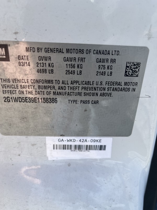 2014 Chevrolet Impala - UNKNOWN IF THERE ARE ANY MECHANICAL ISSUES. MAY HAVE A/C, P/S, P/W, P/L, ABS, AM/FM, AUTOMATIC TRANSMISSION. OPTIONS MAY NOT WORK. THE ATTACHED PICTURES OR THIS DESCRIPTION MAY NOT INDICATE THE ACTUAL CONDITION OF THIS ITEM. WE DO NOT PROVIDE ASSISTANCE WITH TIRE INFLATION OR MECHANICAL ISSUES. VEHICLE MAY HAVE A DEAD BATTERY AND WILL NEED TO BE JUMPED TO START.