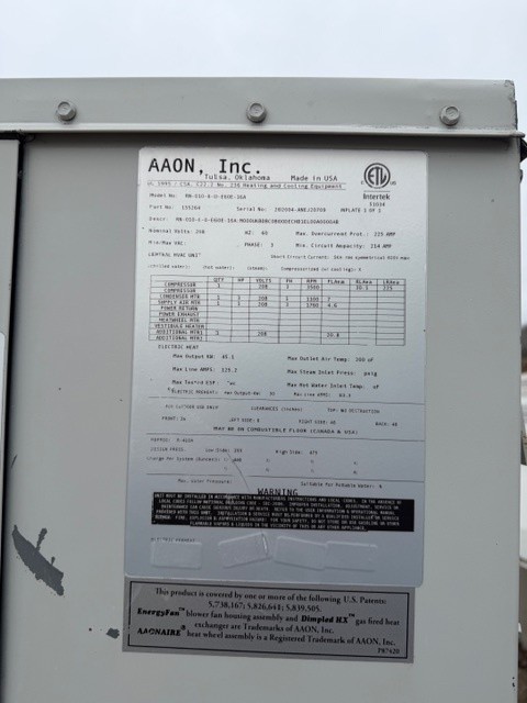Item – # 17 AAON 10 Ton HVAC Unit