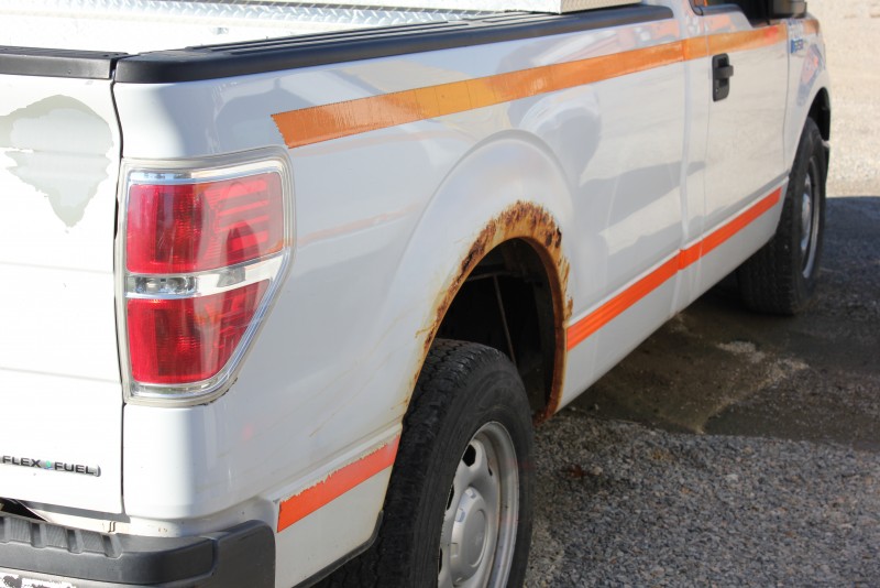 Paint is likely in overall poor condition, with peeling and fading. Dents, dings, and scratches as consistent with vehicle age, mileage and use or worse. Rust may or may not appear on several areas around the vehicle. May or may not have undercarriage or structural rust damage. Decal and sticker remnants may remain on paint. Other paint flaking and surface rust may be present. There may be holes from removal of communication antennas and equipment.