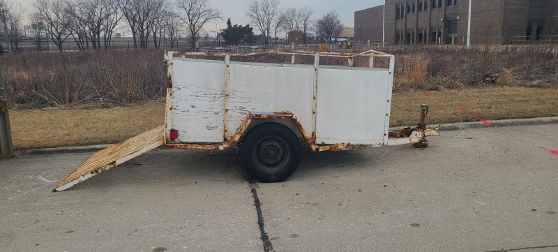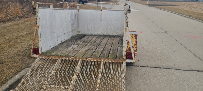 *NO TITLE* - 2 WHEEL TRAILER WITH METAL GATE RAMP AND WOOD BED. WHEELS ROLL. UNKNOWN IF LIGHTS WORK.
