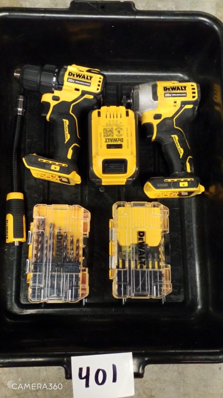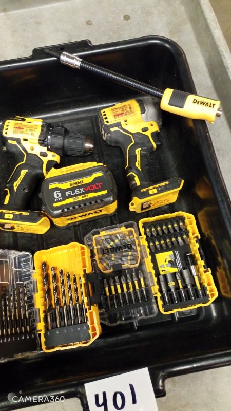 ASSORTED DEWALT TOOLS - DRILL IMPACT DRIVER DRILL DRIVER, BATTERY & SCREWDRIVING/DRILL BIT SETS