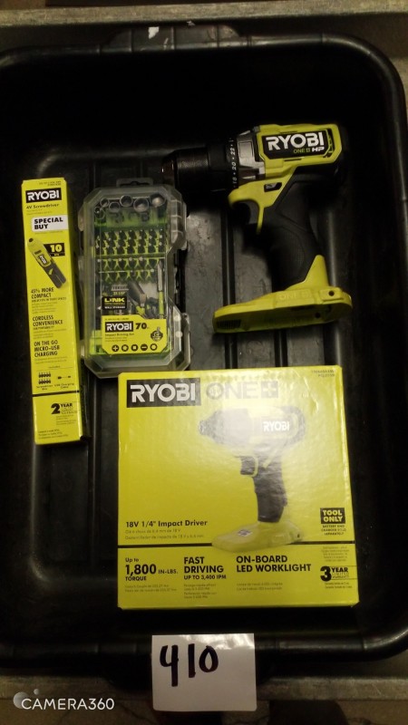 ASSORTED RYOBI POWER TOOLS & IMPACT DRIVING SET