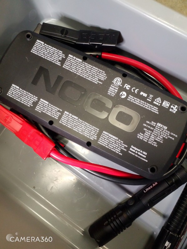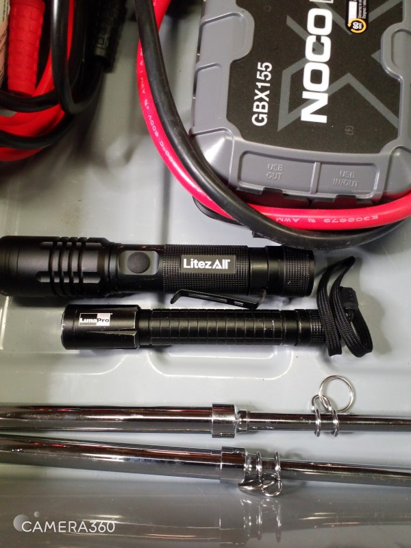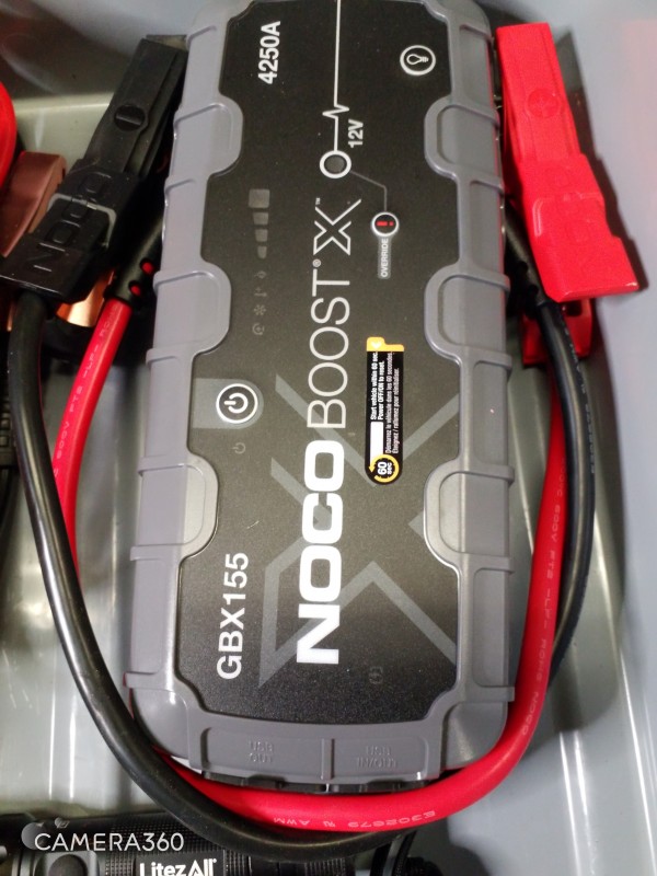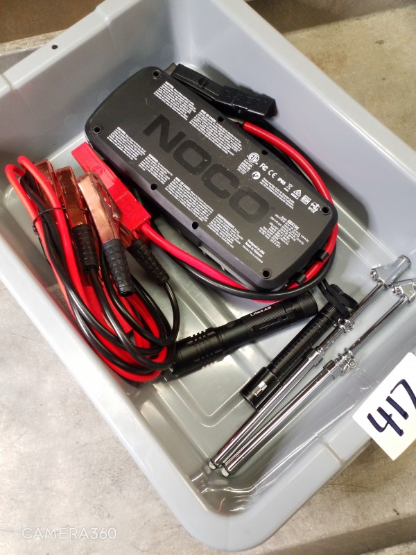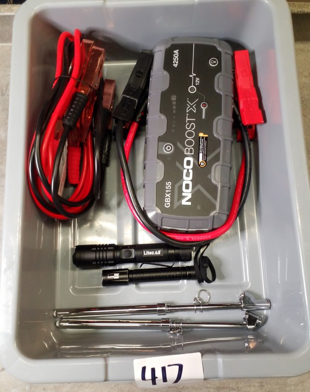 NOCO BOOST JUMP PACK, JUMPER CABLES, TIRE PRESSURE GAGES, & FLASHLIGHTS