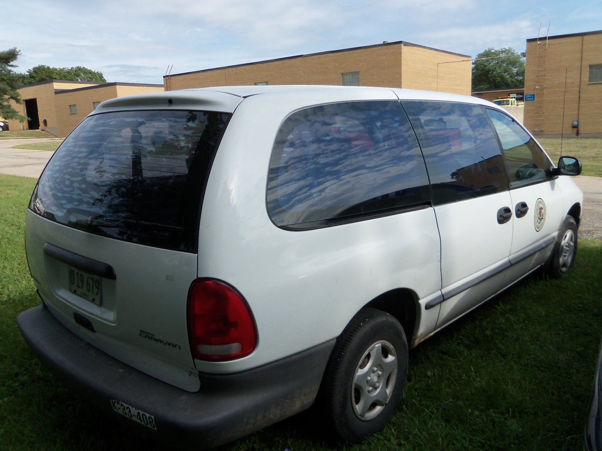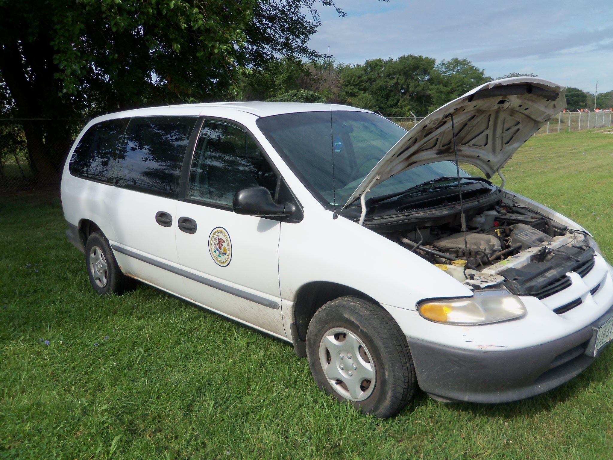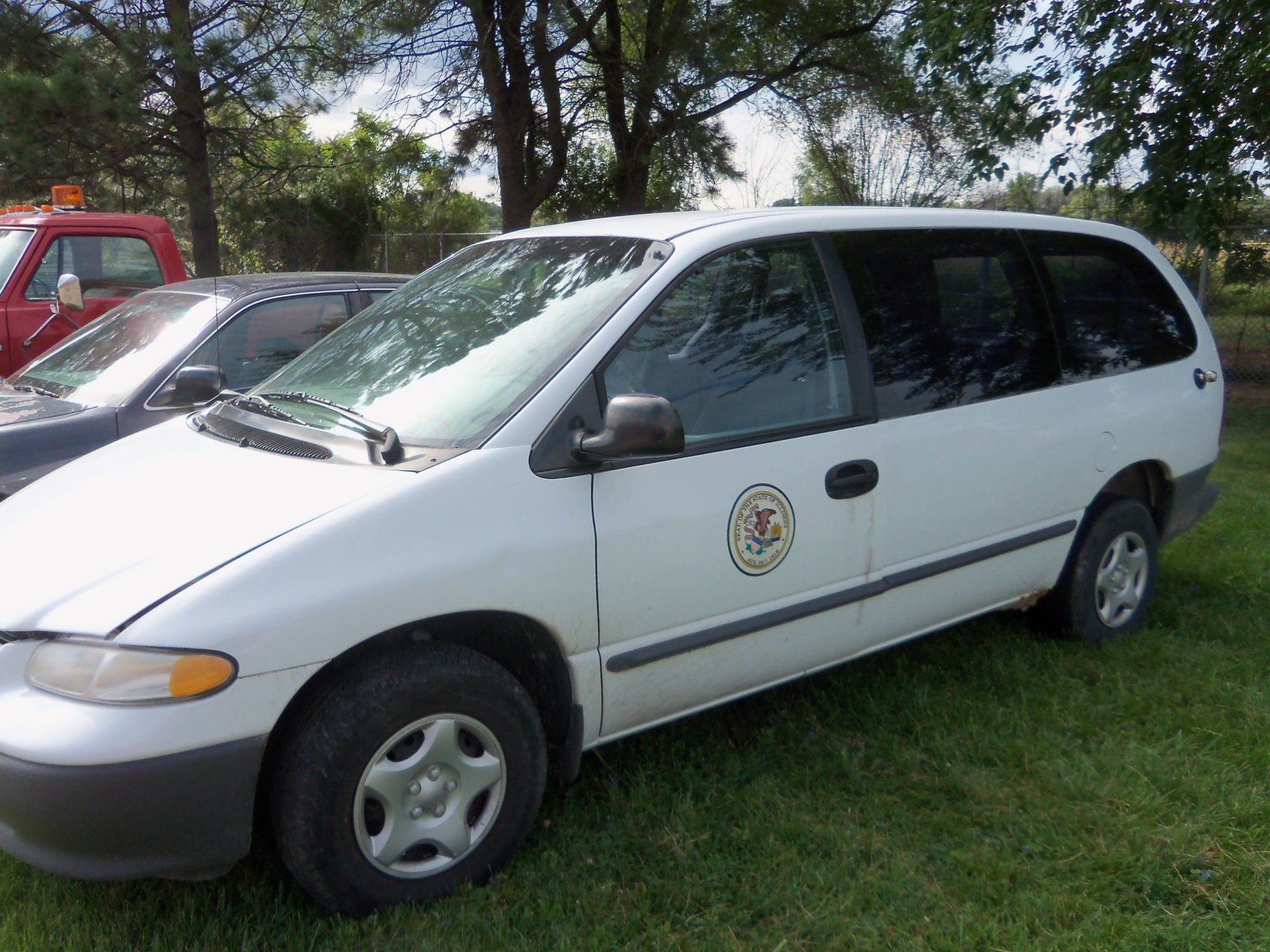 1997 White Dodge Caravan. Eqpt. # 41339. With 105,434 miles. Transmission is out.