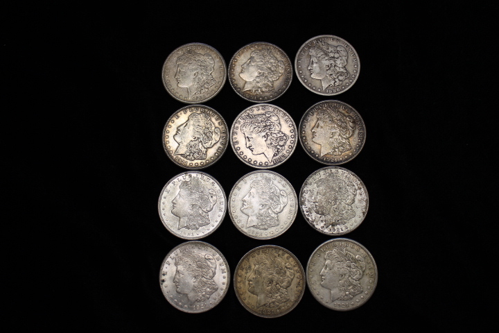 32-MORGAN SILVER DOLLARS; 1882O, 1883S, 1886, 1886O, 2-1889, 1890, 1890O, 1891S, 1896, 1897S, 9-1921, 9-1921S, 3-1921D.