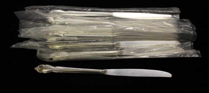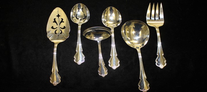 INTERNATIONAL SILVER PLATE FLATWARE; 8-DINNER FORKS, 8-DESSERT FORKS, 8-DINNER KNIVES, 8-TEASPOONS, 8-TABLESPOONS, 1-SUGAR SPOON, 6-SERVING PIECES, 1-BUTTER KNIFE.