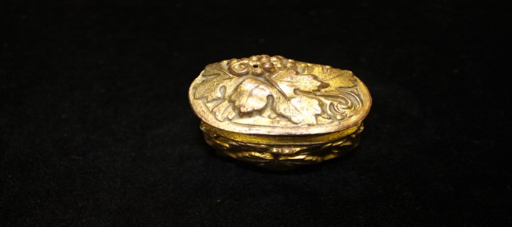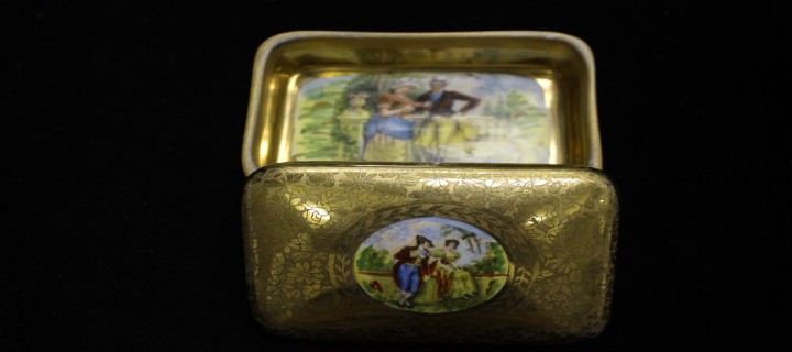1-GOLD IN COLOR LINED TRINKET BOX, 1-JACK DANIELS TIN BOX, 1-HAND PAINTED IN 22K GOLD TRINKET BOX, 1-ORNATE SILVER IN COLOR METAL TRINKET BOX, 1-SMALL GOLD IN COLOR POT METAL JEWELRY CASKET AND 1-GOLD COLORED PILL BOX. PAIRPOINT HAIR PIN BOX WITH 5.1 GRAM 14KT GOLD CHAIN AND MISC OTHER ITEMS INSIDE; 6-SALT/PEEPER SHAKERS WITH STERLING SILVER TOPS; CARLTON PEN & PENCIL SET AND 1-PARKER BALL POINT PEN; CERAMIC SPOON.