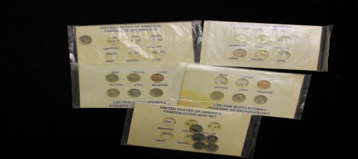 1-1973 ST PATRICKS DAY COMMEMORATIVE MEDAL & CACHET; 2-100TH ANNIVERSARY STATUE OF LIBERTY MINI GOLD COIN; 4-AMERICAN REVOLUTION BICENTENNIAL MEDALLIONS; 1-STEEL PENNY COIN SET; 3-MINIATURE NIXON PENNIES; 1-ANCIENT WIDOWS MITE COIN; 2-BICENTENNIAL PENNIES; 5-LINCOLN/KENNEDY PENNIES; 4-MINI GOLD COIN REPLICAS; 186 YR OLD SHIPWRECK COIN; HEROES USA STAMP PIN; MINI 1854 1/2 DOLLAR CALIFORNIA GOLD COIN REPLICA; 3-FRANKLIN MINT MEMBERSHIP TOKENS; 1-STATUE OF LIBERTY COMMEMORATIVE MEDAL; 2-1982 LINCOLN CENT COIN SETS; INFLATION MONEY COIN SET; 1-1983 UNCIRCULATED U.S. MINT SET; 1-1985 COMMEMORATIVE U.S MINT SET; 1982 WORLDS FAIR COLLECTORS SET; 5-MINIATURE COIN SETS.